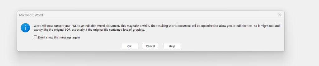Microsoft Word is a word processor that includes many features, including OCR that will help you to edit a scanned PDF. You can consider it to be one of the best offline PDF OCR software. If you have MS Word installed, then you can try to open the PDF in the Word app. It will automatically perform OCR while importing the PDF. Here are the steps.