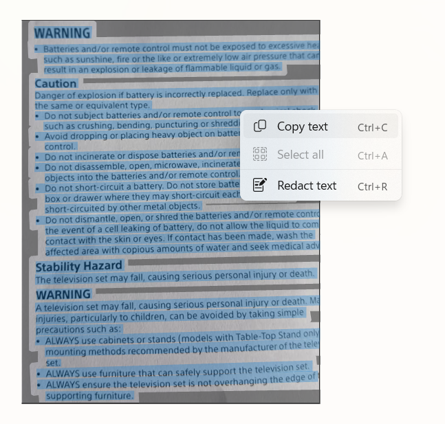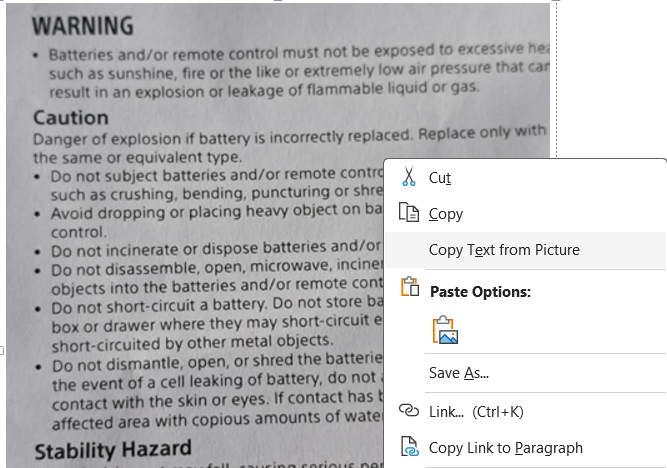 8. Right-click on the image and choose the “Copy Text From Picture” options and the text within the image/PDF will be copied to the Clipboard.