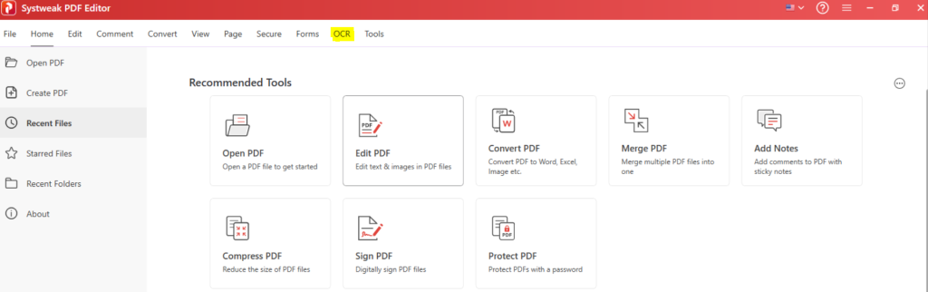 The abbreviation OCR means Optical Character Recognition. Optical character recognition is a technology that enables the interpretation of the text in scanned PDFs and the modification of the PDF so that the text in the PDF can become editable. This is achieved by the use of image recognition, whereby patterns like alphabets, symbols, and words are identified and then modified to text format. With today’s technological advancement, OCR technology has been improved through the integration of AI technology in advanced software like Systweak PDF editor.