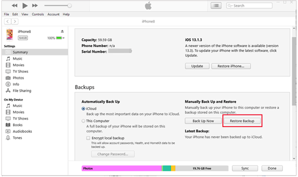 Another backup alternative that you can use to create backup of your iPhone contacts is via iTunes (macOS Mojave or earlier) or Finder (macOS Catalina and later). To restore entire backups using this option, you need to: